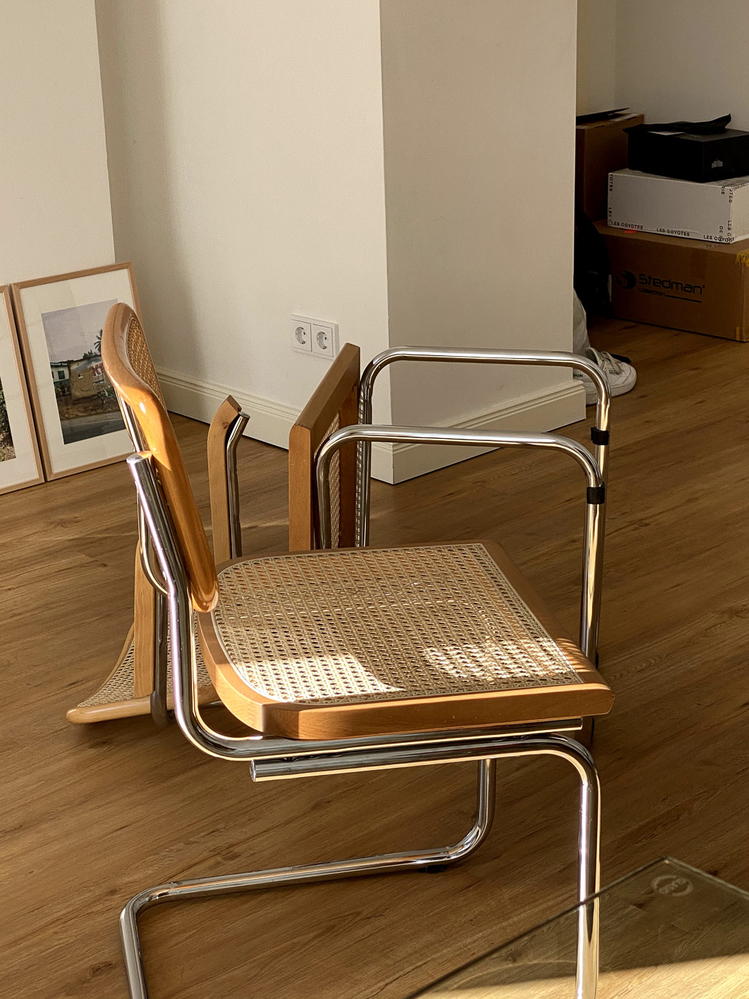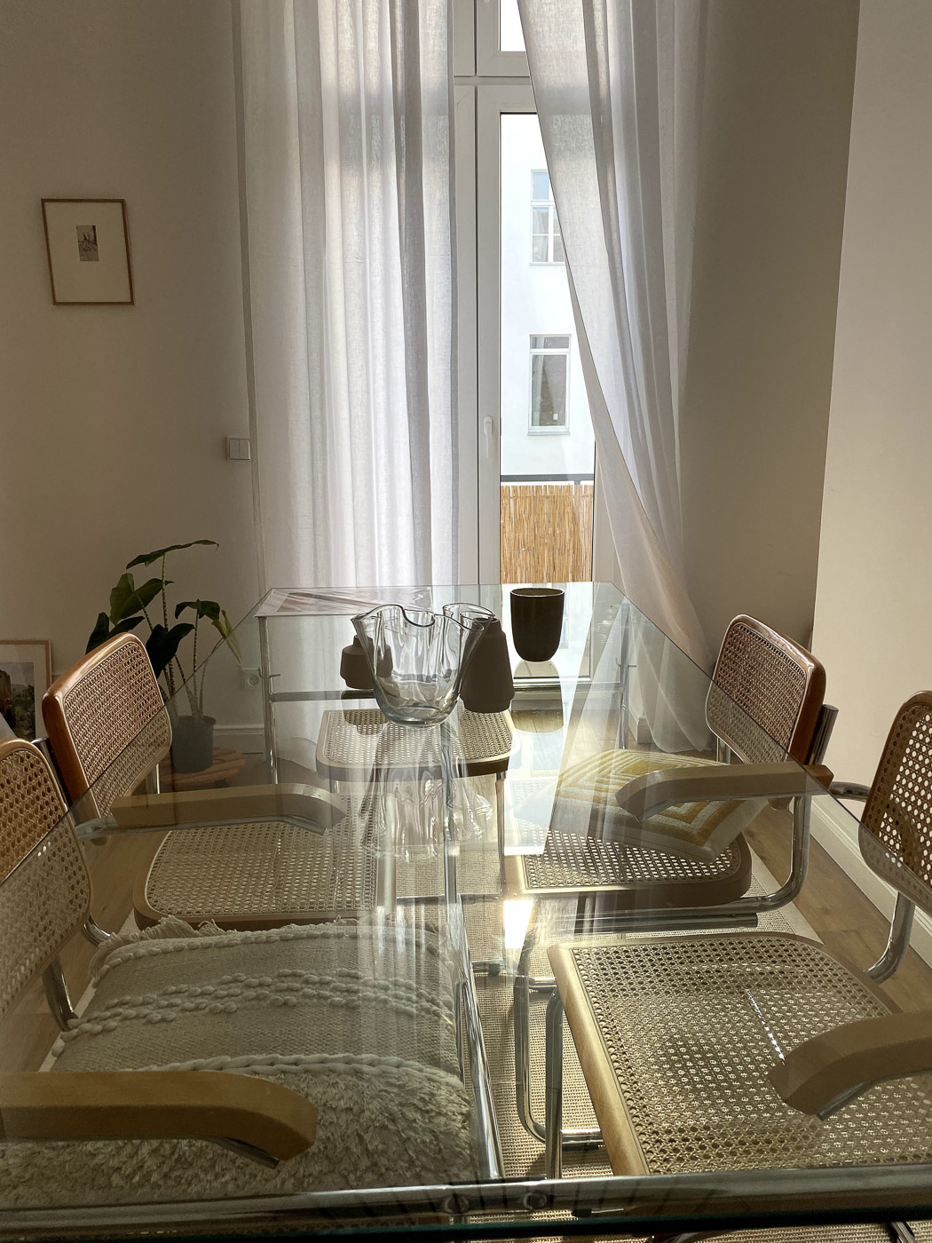 Dies ist eure am häufigsten gestellte Frage. Meine Stühle habe ich ebenfalls vintage auf Ebay Kleinanzeigen gekauft. Ich liebe die Freischwinger mit Wiener Geflecht, ein absoluter Klassiker und sie passen perfekt zum Tisch. Meine Stühle sind aus den 70ern, es gibt aber auch wunderschöne neuwertige Freischwinger.