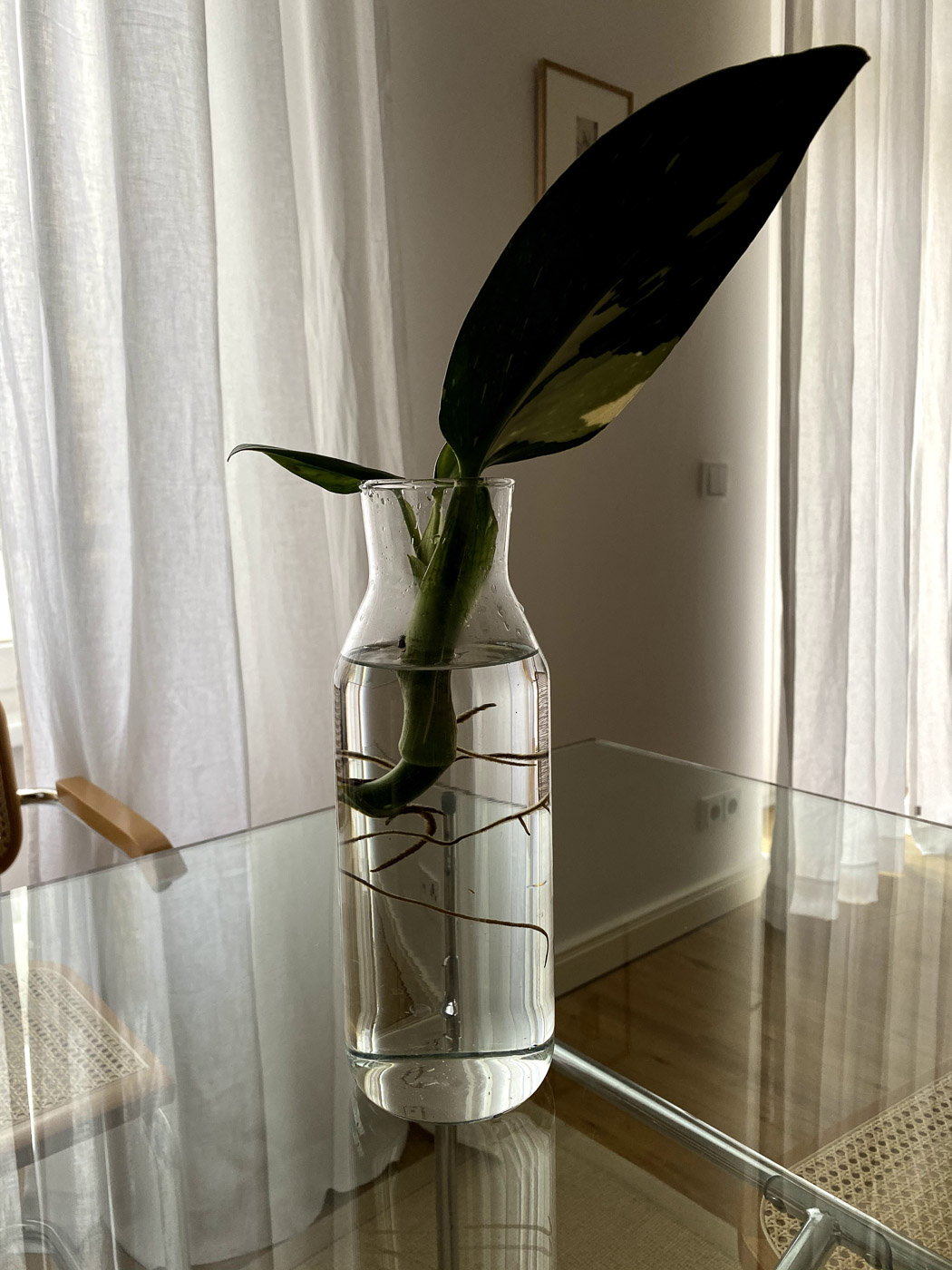I found the E2 table frame with glass top on Ebay Kleinanzeigen. The original design of the frame goes back to Egon Eiermann, who designed a welded version in 1953. Adam Wieland developed Egon Eiermann’s table frame further by making it more flexible with detachable space-diagonal cross struts. The stable and minimalist E2 is born and quickly becomes a basic piece of equipment for working in drawing rooms and architects‘ offices. My table previously belonged to a university professor who was a personal friend of Mr Eiermann. Who knows what great ideas were born at this table. It inspires me every day, because with its clean lines it is perfect as a work surface and at the same time offers plenty of space to eat with friends and family. In addition, the room remains airy due to the transparent glass top. The choice of tabletop is up to you, however, and so the table can be very easily adapted to individual needs thanks to the many configuration options and the height adjustability.