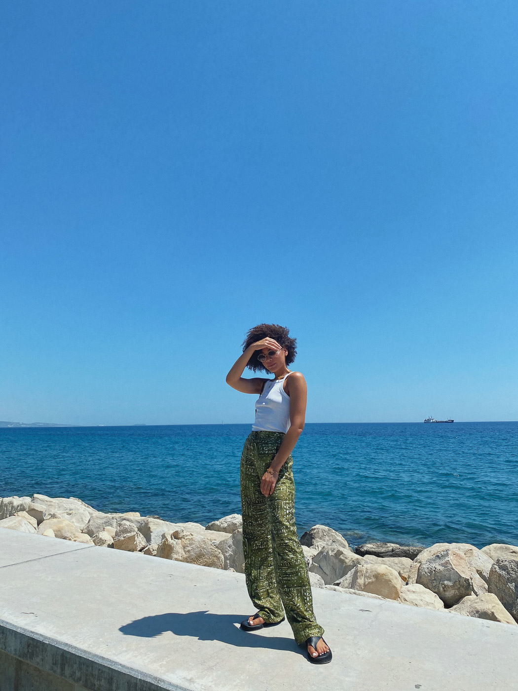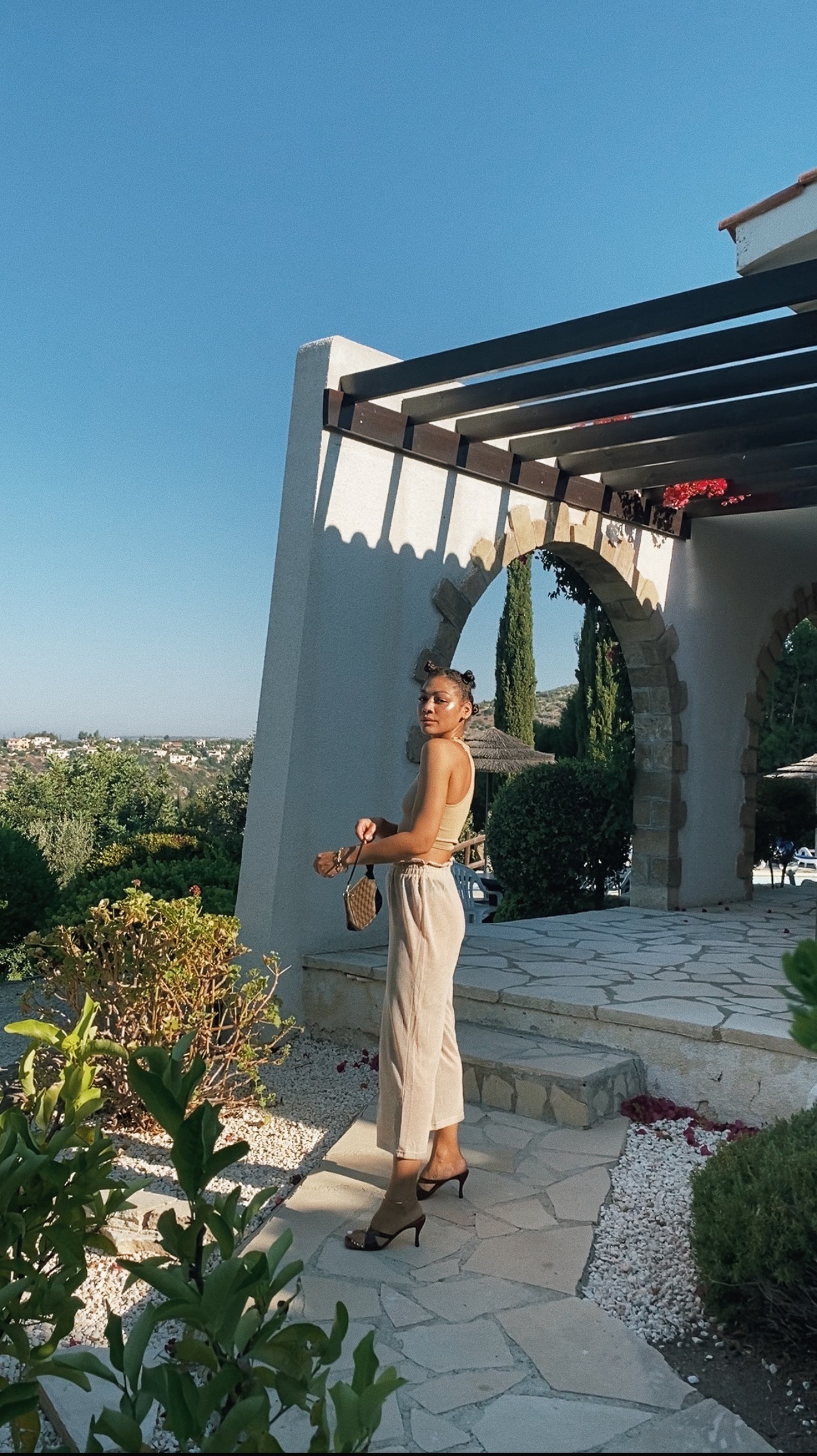 Since we had perfect weather with 32 degress all the time, I opted for a lean wardrobe. Oversized shirts and basic tops matched with silky flowing pants like my favorite from Les Coyotes Des Paris. I also packed my organic silk dress from serenity wear in color mango. I love it! And when I wasn’t running around barefoot I wore my Havaianas – a true vacation staple, my Ginza Sandals and a pair of high heels from By Far.